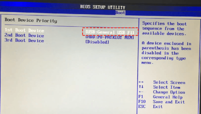 3. Cuando confirme la configuración, pulse la tecla F10 para guardar y salir. Al salir, el PC arrancará desde la memoria USB.