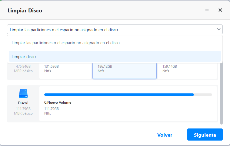 3. Seleccione el disco o las particiones que desea borrar. A continuación, haga clic en Siguiente.