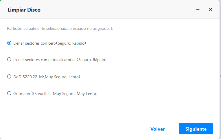 ◆ Hay 4 métodos diferentes vienen con diferente velocidad y nivel de seguridad, como,llenar sectores con cero, llenar sectores con datos aleatorios o Gutmann.