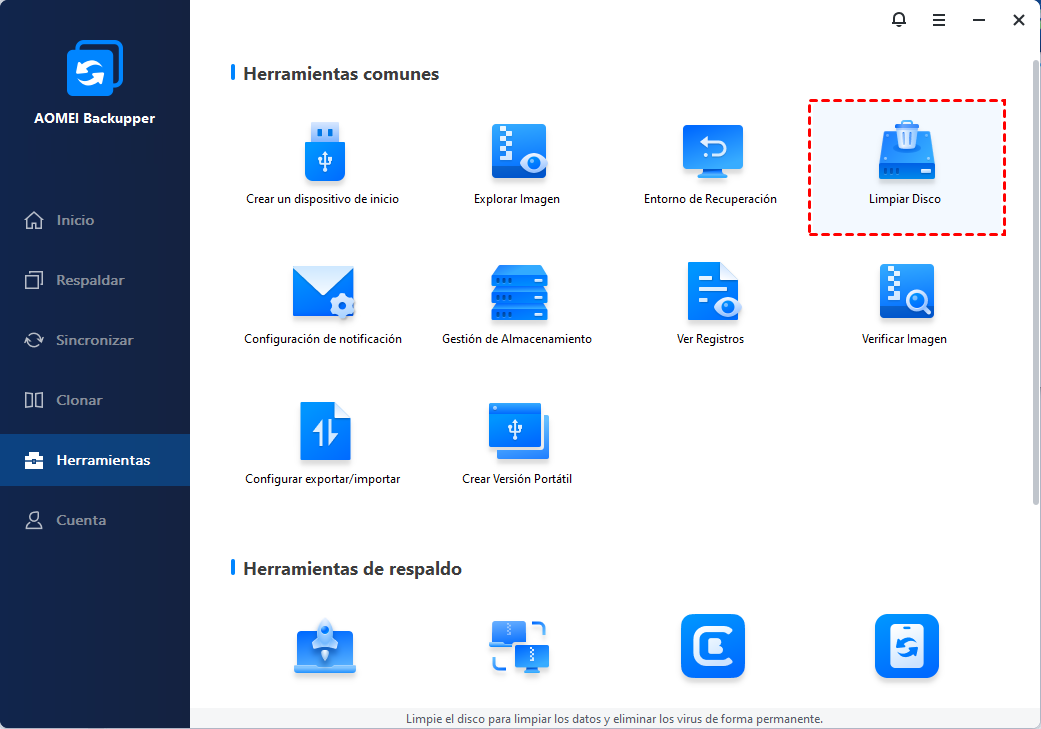 1. Inicie el software, vaya a Herramientas y seleccione Limpiar Disco.