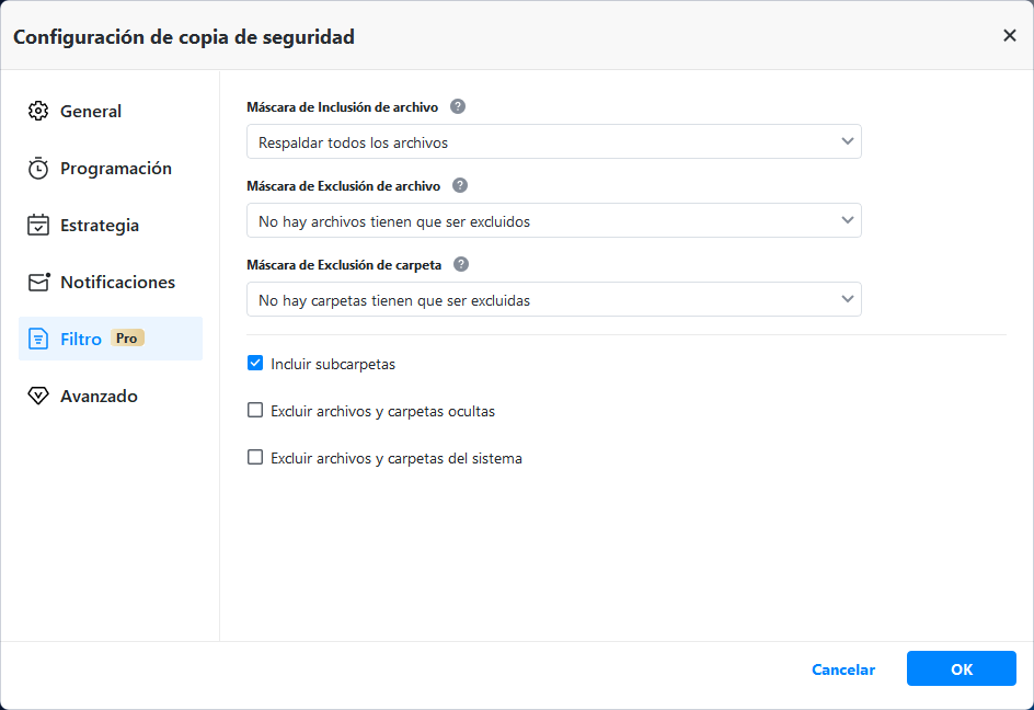 ✎Nota: Después de hacer clic en Añadir carpeta, puede abrir los Ajustes del filtro en la Sincronía regular para establecer la máscara de inclusión/exclusión de archivos (disponible en las ediciones Pro y superiores).