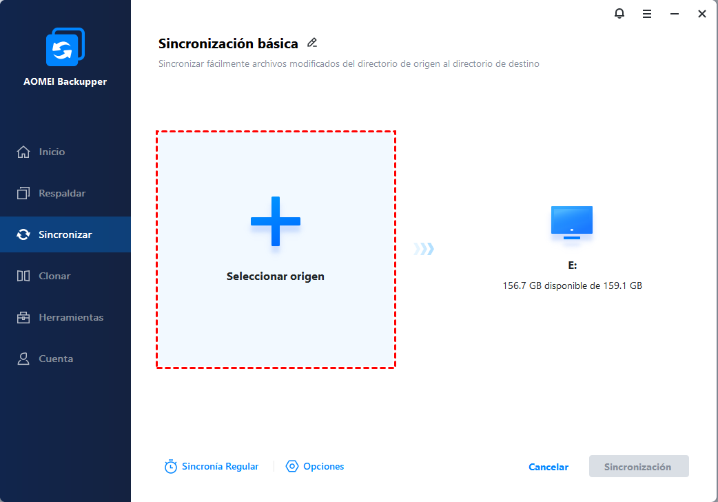 Sincronización mirror: Mantenga el contenido del directorio de destino exactamente igual al del directorio de origen.