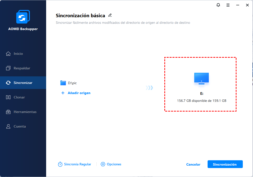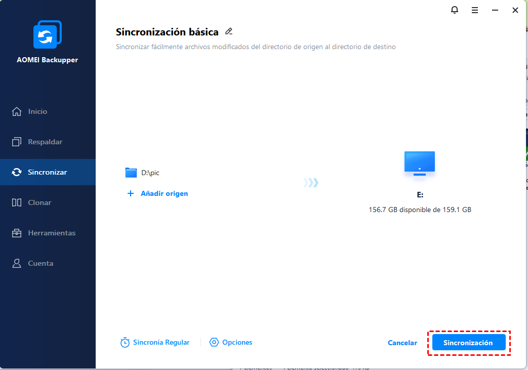 4. Haga clic en el botón "Sincronización" para realizar la operación. Una vez finalizada la operación, desconecte la unidad seguramente.