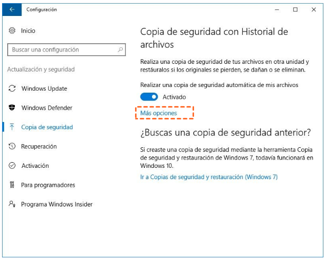 Método 2: Transferir archivos del disco duro interno al externo mediante el Historial de archivos