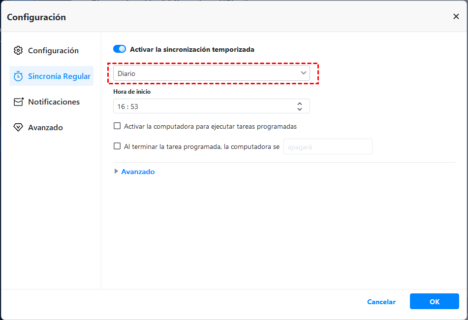 Excepto por la función de Sincronización, puedes completar esta tarea con la ayuda del Respaldo de Archivos. Viene junto con la copia de seguridad diaria/semanal/mensual programada, así como el respaldo incremental o diferencial. Al usarlo, puedes establecer con precisión el tiempo y los intervalos de las copias de seguridad.