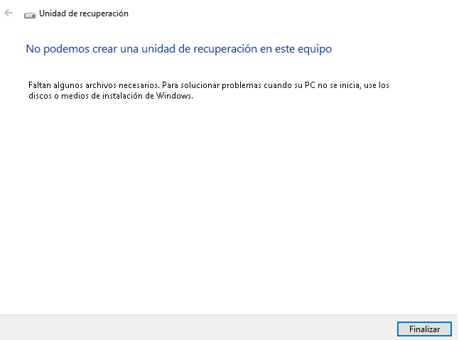 Solución de problemas: Se ha producido un problema al crear la unidad de recuperación