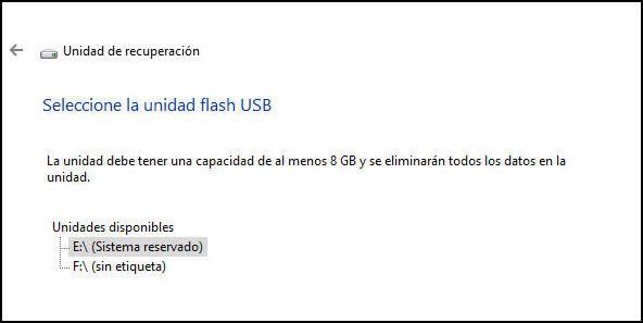 *Es posible que el USB de arranque de Windows no funcione en algunos casos. Por ejemplo, no puedes usar un disco de recuperación de Windows 8 para restaurar Windows 10, ni tampoco puedes usar una unidad de recuperación hecha por Windows 10 de 64 bits para arrancar un ordenador de 32 bits. Es decir, no se puede utilizar un USB de recuperación de Windows 10 creado de esta manera en otro equipo.