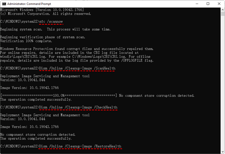 Forma 3. Ejecute los comandos SFC y DISM para detectar errores