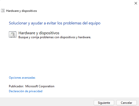Antes de pasar a soluciones más complejas, empecemos por la solución más sencilla. Windows ahora incluye una amplia gama de herramientas dedicadas a la solución de problemas. Una de ellas está diseñada para problemas de hardware y dispositivos.