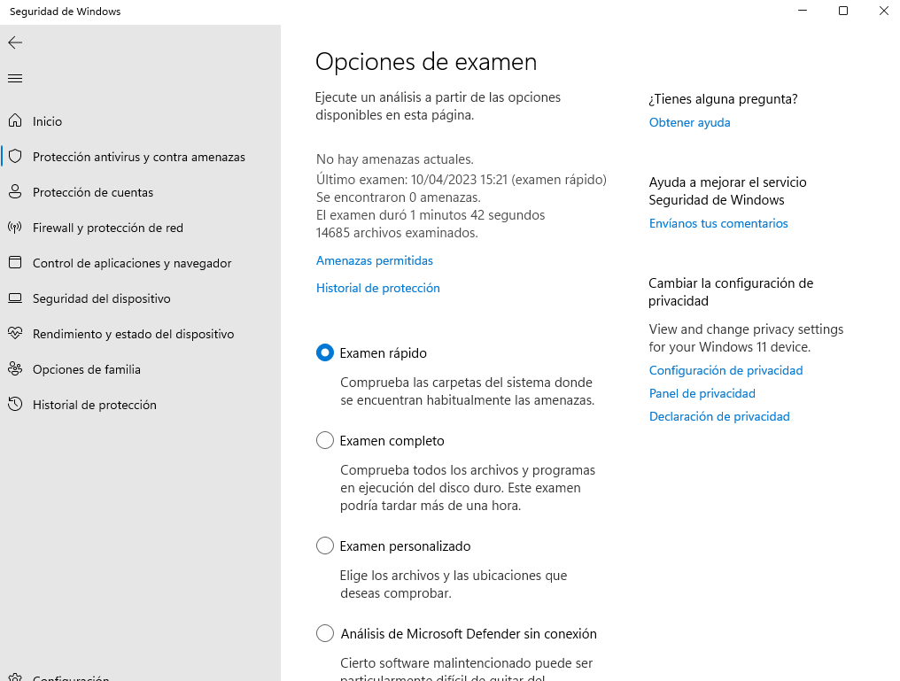 3. A continuación, haga clic en Opciones de examen para ver todos los análisis disponibles. Seleccione la opción Examen completo y haga clic en el botón Escanear ahora en la parte inferior para analizar a fondo su PC en busca de virus o malware.