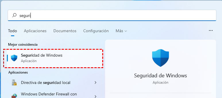 1. Busque Seguridad de Windows en el cuadro de búsqueda y haga clic en el resultado de búsqueda correspondiente para iniciar la aplicación.