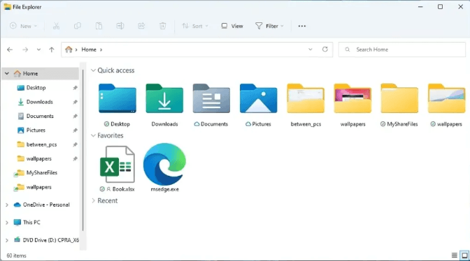 A partir de la actualización de Windows 11 de 2022, Windows 11 introduce una serie de cambios visuales y mejoras en el Explorador de archivos. Por ejemplo, esta versión cuenta con nuevas y altamente solicitadas características, como el soporte para pestañas y un panel de navegación rediseñado. Encontrarás una nueva página de inicio, integración de OneDrive, accesos directos, cambios en el menú contextual y más.