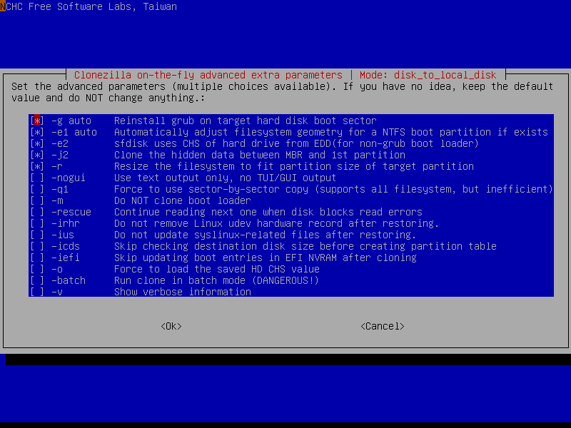Para restaurar la imagen a un disco más pequeño usando Clonezilla, ver los pasos a continuación: