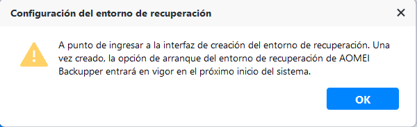 - El entorno de recuperación creado por AOMEI Backupper se guarda en la ruta C:\Aomei Recovery.