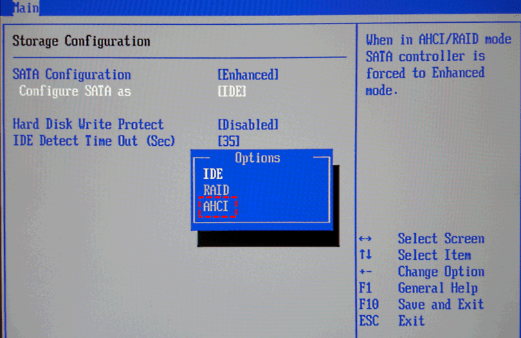 Si has cambiado el modo de controlador de disco SATA en la configuración de la BIOS antes de que ocurra este problema, entonces puedes intentar cambiarlo a la configuración original.