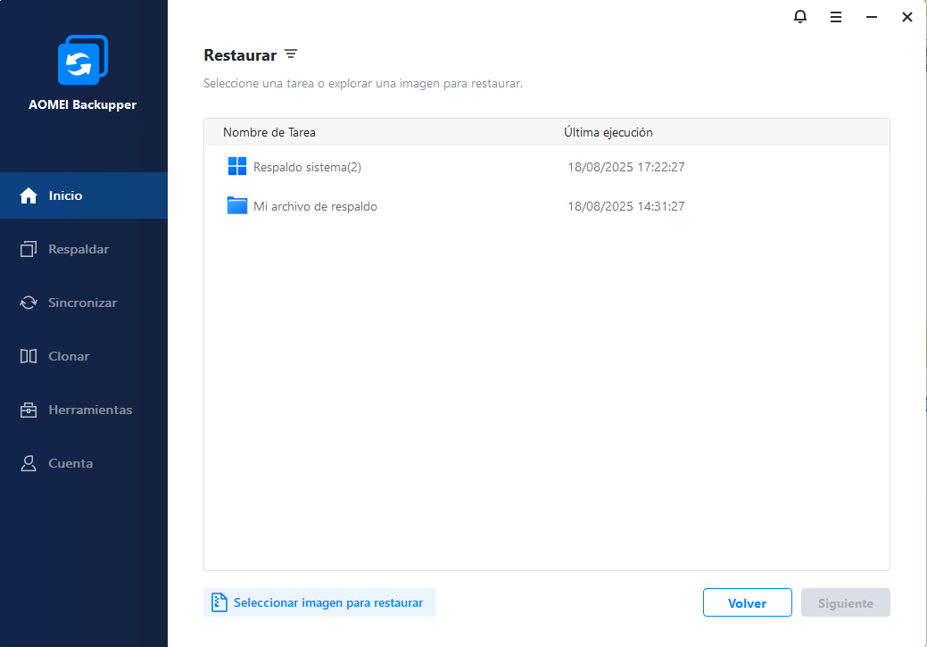 Paso 2. Vaya a la pestaña Restaurar. Haga clic en Seleccionar imagen para restaurar para navegar manualmente hasta la ubicación del archivo de imagen.