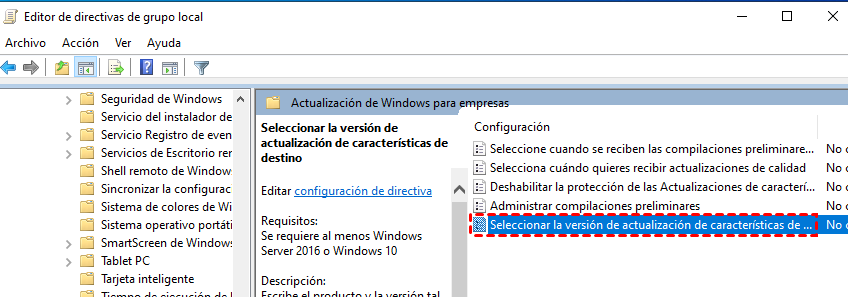 Configuración de equipo > Plantillas administrativas > Componentes de Windows > Windows Update > Actualización de Windows para empresas