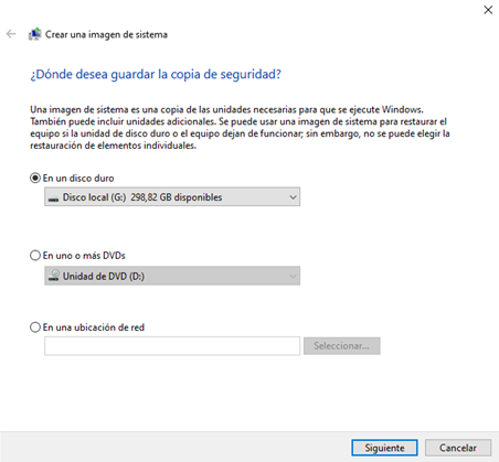 - Crear una imagen del sistema: es más adecuado para copias de seguridad y recuperación, ya que permite guardar el sistema en un archivo.