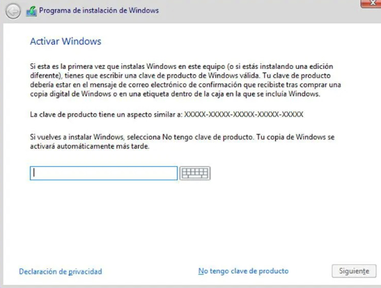 10. Simplemente haz clic en "No tengo una clave de producto". Elige la versión de Windows 11 que deseas instalar. Simplemente selecciona "Windows 11 Pro" y haz clic en "Siguiente". Acepta el acuerdo de usuario y haz clic en "Personalizada: Instalar solo Windows" en la siguiente pantalla.
