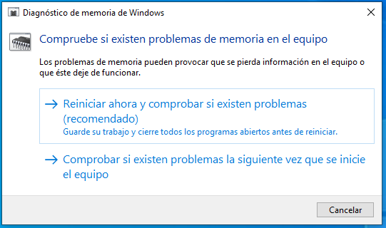 Solución 1. Ejecución de diagnósticos de memoria
