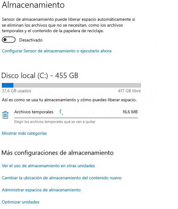 Paso 1. Vaya a Ajustes > Sistema > Almacenamiento y desplácese hasta el final de la página donde dice Más ajustes de almacenamiento.
