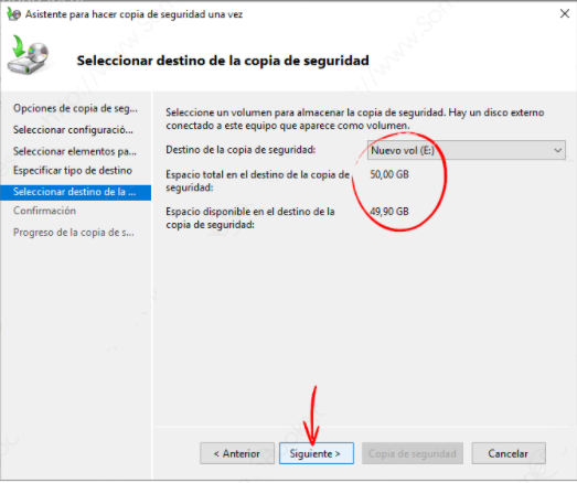 - X: Significa la letra de la unidad de la partición en la que desea guardar la copia de seguridad.
