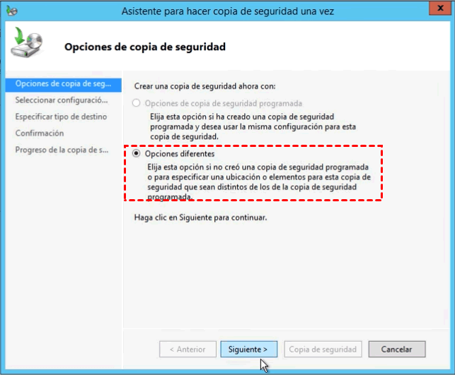 Paso 2. Selecciona Opciones diferentes y haz clic en Siguiente.