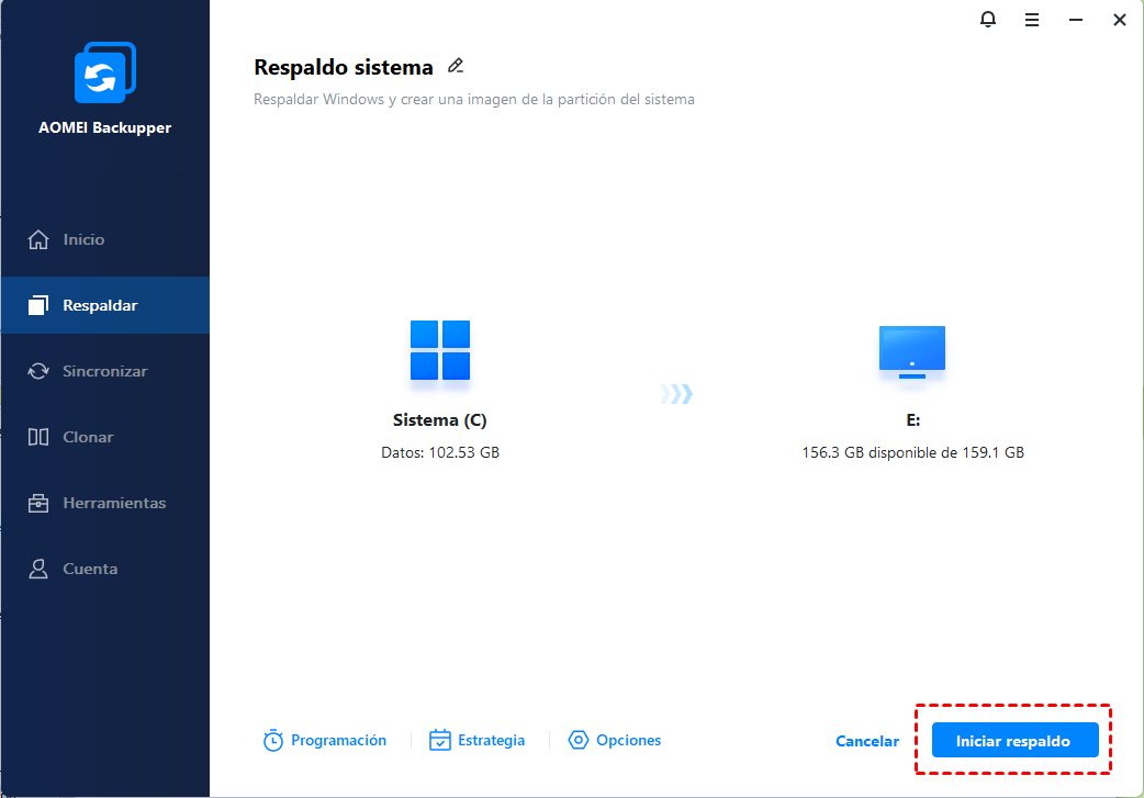 Para evitar estos problemas, puedes utilizar un software de copia de seguridad gratuito para crear una imagen del sistema en caso de posibles problemas del sistema. De esta manera, incluso si tu ordenador falla de alguna manera, puedes utilizar esta copia de seguridad del sistema para restaurarlo y utilizarlo normalmente sin perder datos. Por su sencillez y eficacia, te recomiendo encarecidamente AOMEI Backupper Standard para proteger tu PC con Windows 10/11.