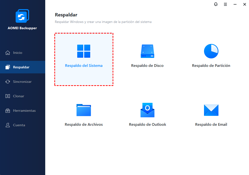 Si desea recuperar su ordenador fácil y rápidamente sin perder los datos personales almacenados y las aplicaciones instaladas, puede crear una copia de seguridad de la imagen del sistema con AOMEI Backupper por adelantado. Veamos los pasos detallados a continuación.