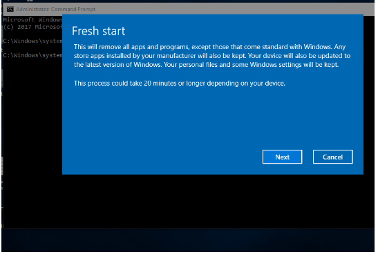También puedes restablecer Windows 10 desde la línea de comandos. El proceso se muestra a continuación: