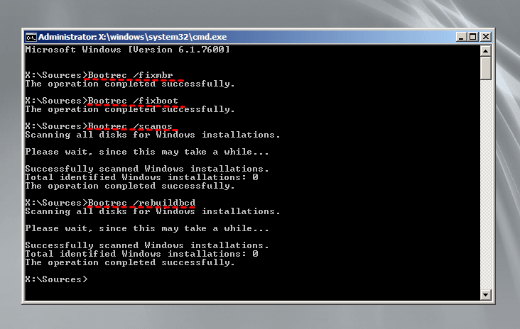 - Bootrec /fixboot