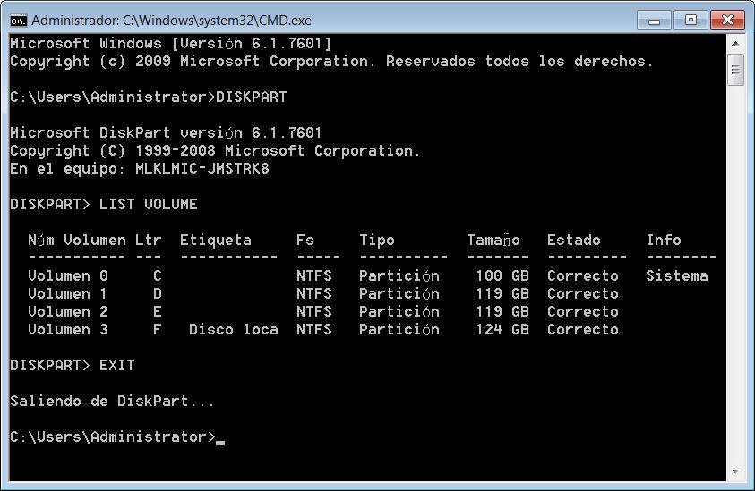 Escriba diskpart y luego listar el volumen en la ventana del símbolo del sistema, verá todos los volúmenes disponibles en el disco y encontrar su unidad de sistema.