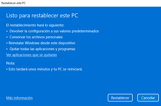 Restablecer Windows 11 sin perder datos ni aplicaciones (guía paso a paso)