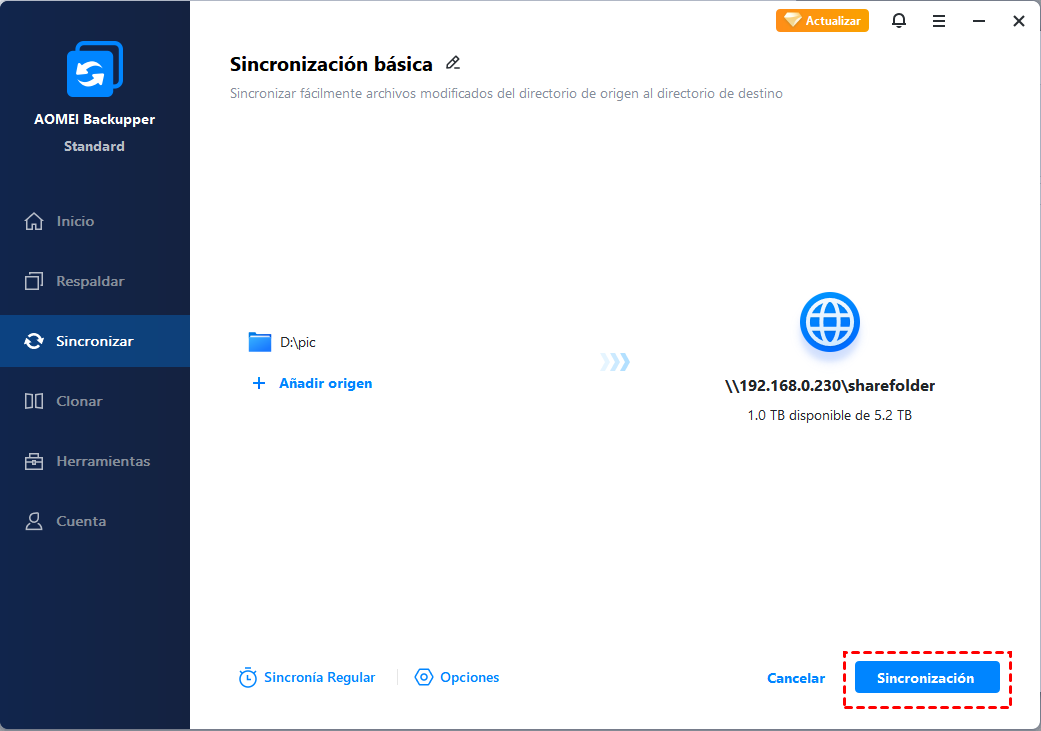 Con el fin de facilitar la transferencia de archivos, es muy recomendable utilizar el software de transferencia de archivos gratuito para PC - AOMEI Backupper Standard, que es un software de sincronización de archivos profesional y gratuito para Windows 11, 10, 8.1, 8, 7, incluyendo 32 bits y 64 bits.