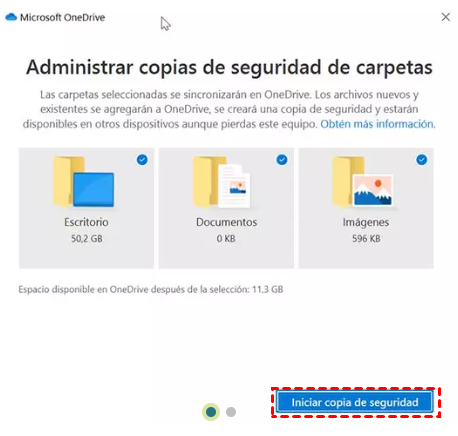 Por favor, ten en cuenta que las carpetas importantes del PC en OneDrive sólo pueden respaldar los archivos de las carpetas Escritorio, Documentos e Imágenes en OneDrive.
