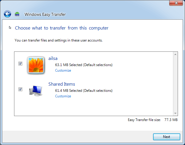 Transferencia con Transferencia Fácil de Windows