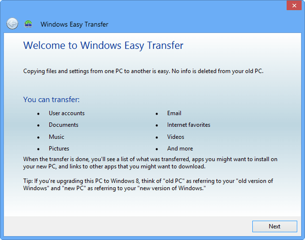 - Windows Easy Transfer: Es un software de transferencia de archivos para transferir datos, como archivos, fotos, música, correo electrónico, configuraciones y más archivos personales.