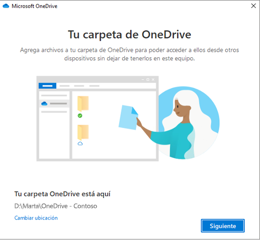 Paso 2. Después de cargar la información de la cuenta, verás la ventana de Tu carpeta de OneDrive y la ubicación predeterminada de OneDrive. Confírmalo y haz clic en Siguiente.