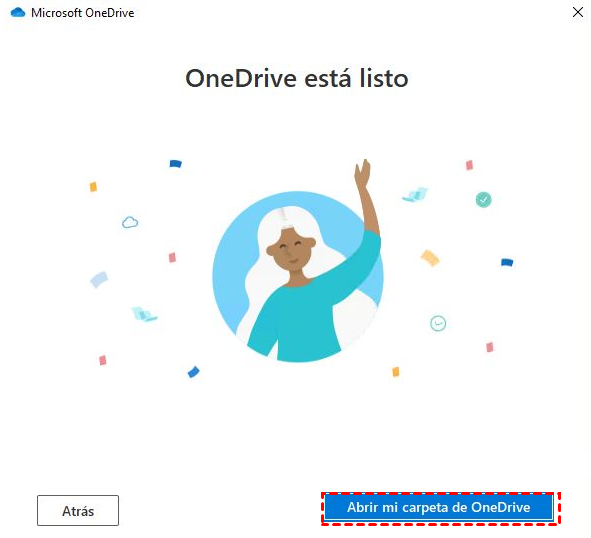 Paso 4. En la ventana Tu OneDrive está listo para ti, haz clic en "Abrir mi carpeta de OneDrive" y comprueba si todos tus archivos están aquí. También puedes comprobarlo en el almacenamiento en la nube o en otros dispositivos.