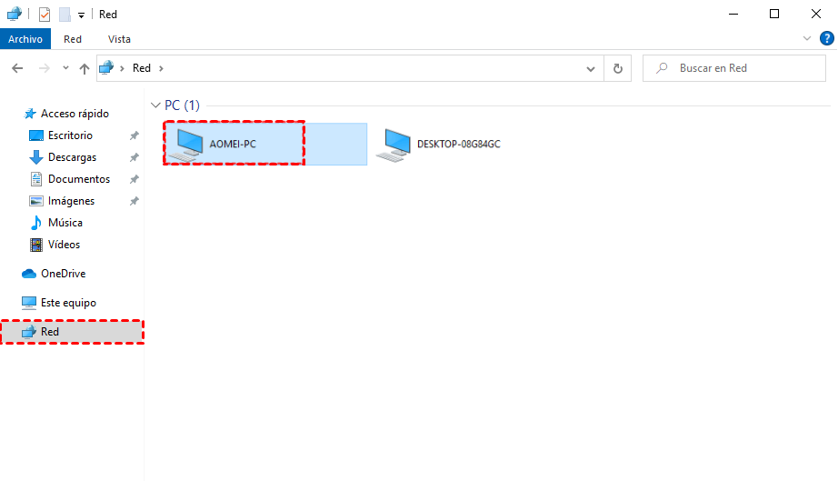 4. Acceda a la carpeta compartida en el ordenador de destino.