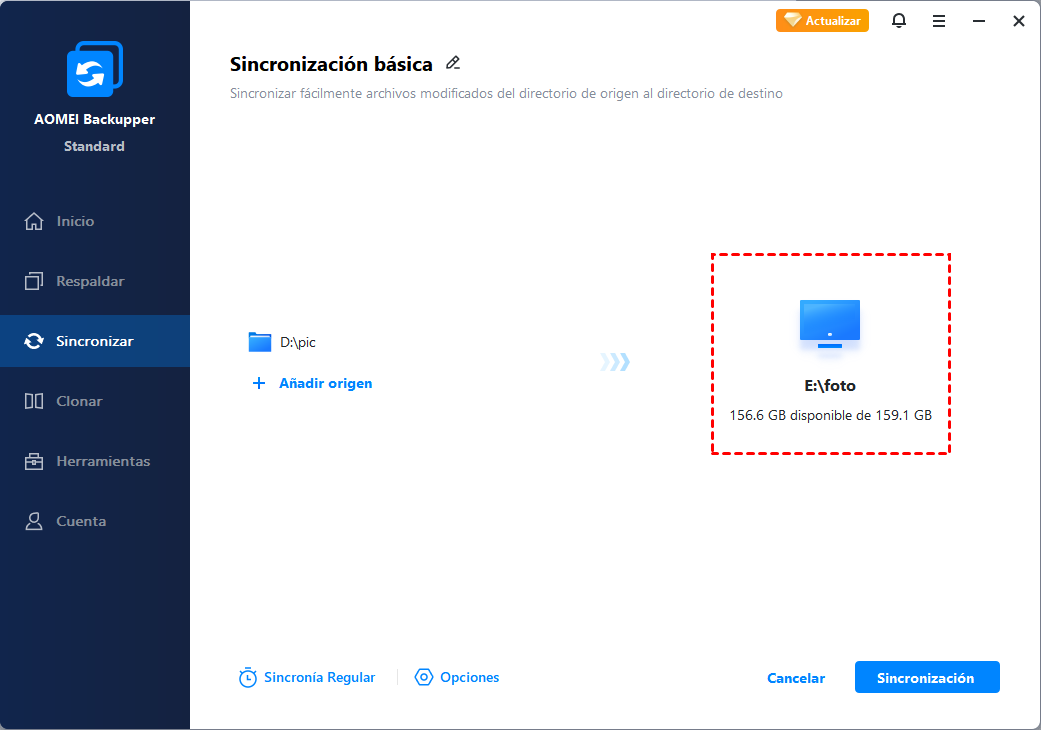 Notas: También proporciona otras tres funciones de sincronización, y están disponibles en la versión Professional.