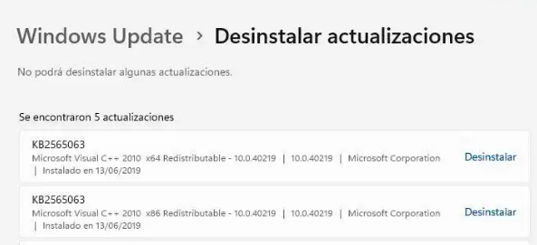 Paso 3. Selecciona "Desinstalar actualizaciones" en la parte inferior de la página y luego haz clic en "Desinstalar" en las actualizaciones recientes de Windows realizadas.