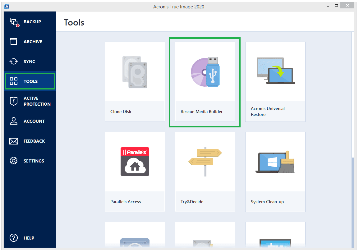 Los pasos para crear un medio de rescate arrancable a través de Acronis True Image 2020 son los siguientes: