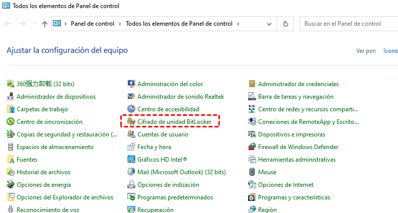 1. Vaya a Panel de control > Cifrado de unidad BitLocker.