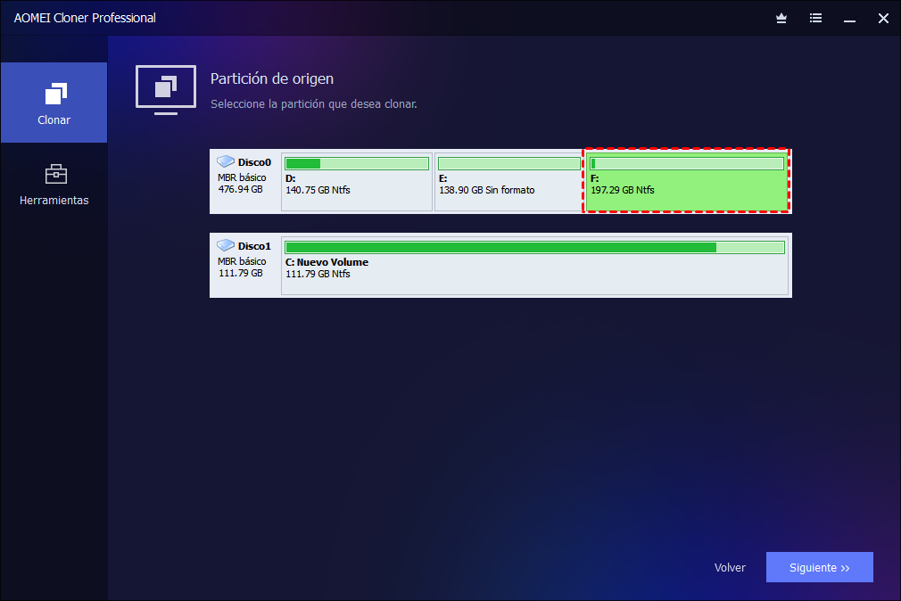 Paso 2. Seleccione la partición de recuperación como partición de origen.