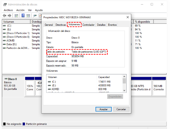 - Localice y haga clic con el botón derecho en la unidad SSD M.2 más pequeña y seleccione Propiedades. A continuación, compruebe si es MBR o GPT.