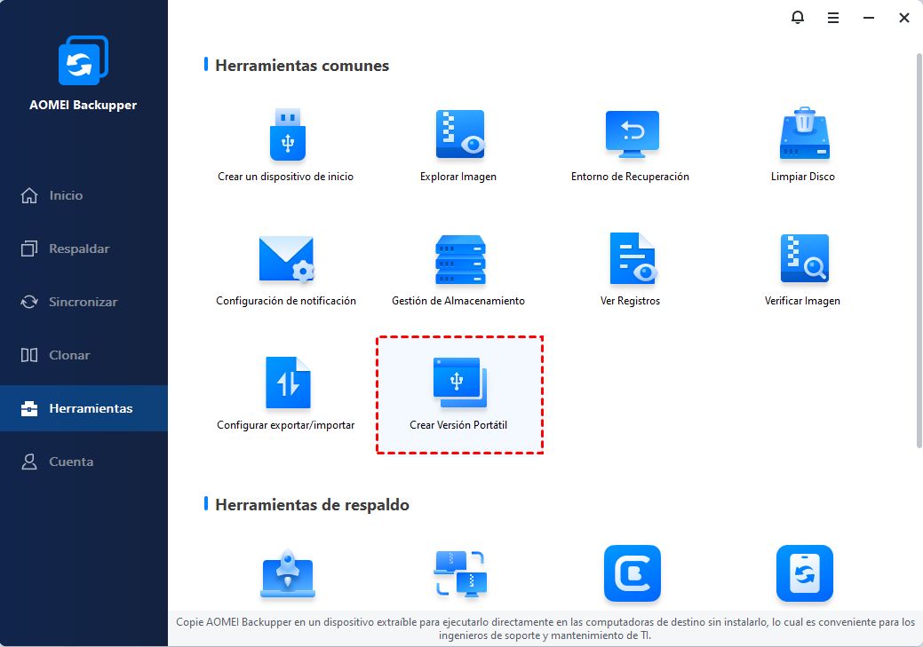 Crear AOMEI Backupper portátil