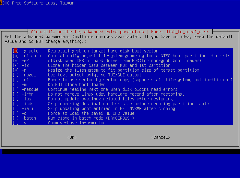 Esto debería permitirte clonar una unidad más grande a una más pequeña sin recibir errores como que el disco de destino de Clonezilla es demasiado pequeño, o que Clonezilla no pudo crear una tabla de particiones en este disco.