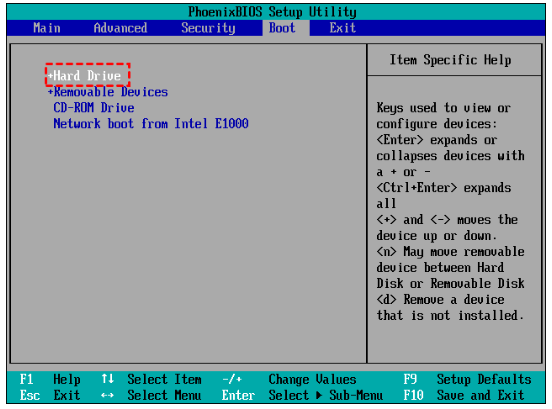 También puedes mantener el disco antiguo instalado, reiniciar el ordenador y pulsar continuamente una tecla específica (normalmente F2, F8, F12, Supr) para entrar en la configuración de la BIOS. A continuación, ve a la pestaña Boot para establecer el disco clonado como primer dispositivo de arranque.