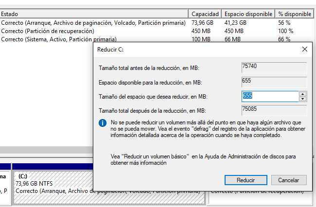 Parte 1: Reducir la partición de origen